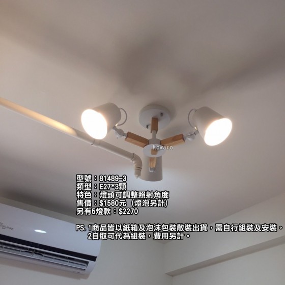 約2~3坪可用~日式半吸頂燈3-5頭-本頁面為3燈款 CH81489-3
