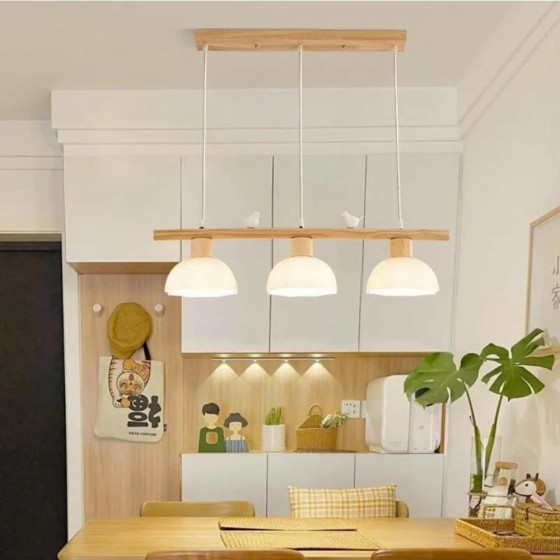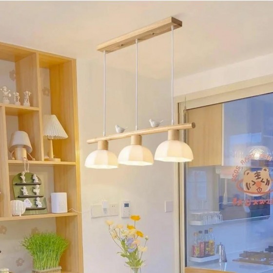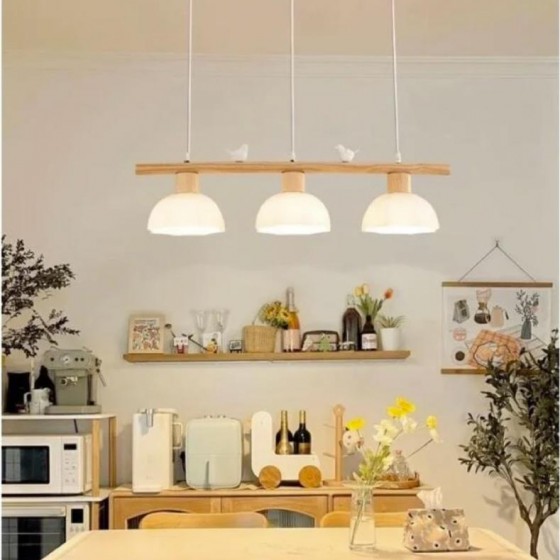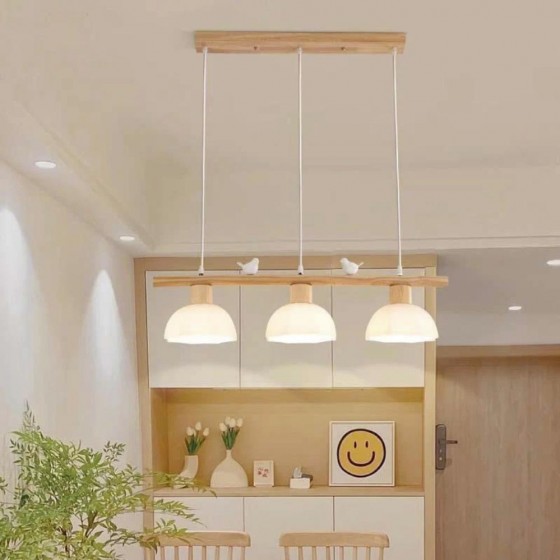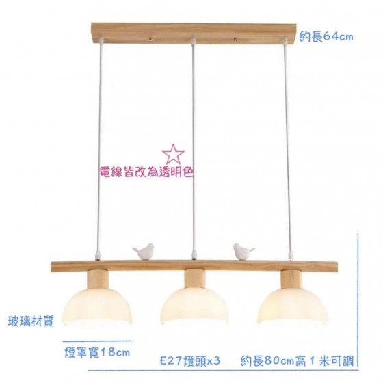 3~6坪適用~三燈玻璃吊燈.小鳥點綴裝飾吊燈.實木裝飾吊燈,木藝吊燈,餐吊燈,餐桌燈,吧檯燈,D6205-3
