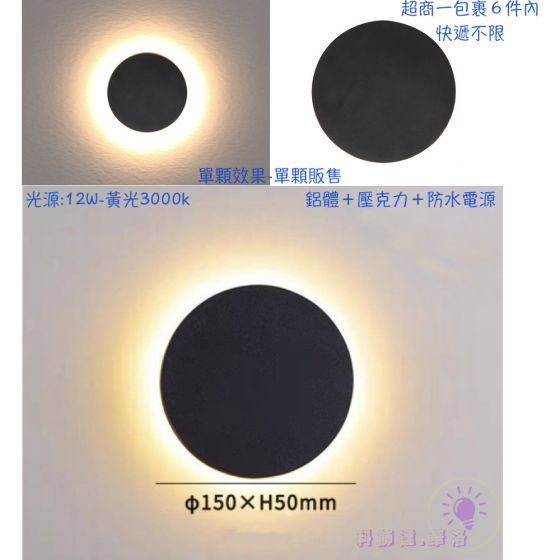 台灣現貨~戶外防潮防水壁燈-可防水圓形日蝕式光壁燈-可戶外景觀壁燈-極薄設計5CM-GZ117