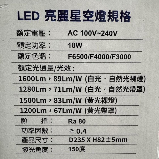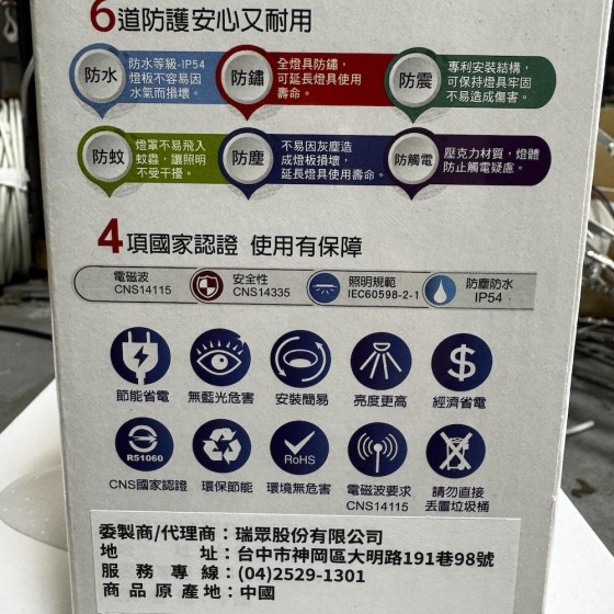 現貨快速出貨3日內到貨~認證燈具.2年保固.防潮燈具.浴室燈.陽台燈.約一坪半使用.C1-18W