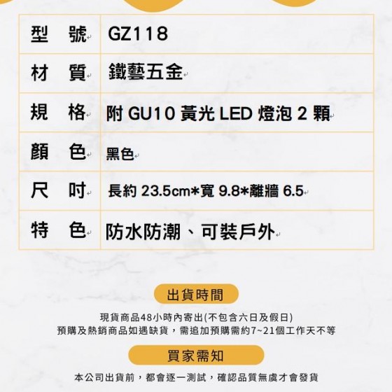 防水壁燈~上下打光~戶外壁燈~GU10燈頭x2~戶外打光款~可更換燈泡~GZ118