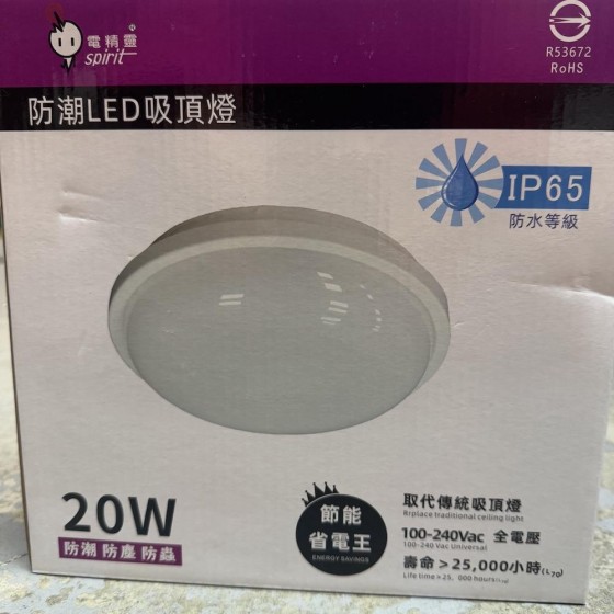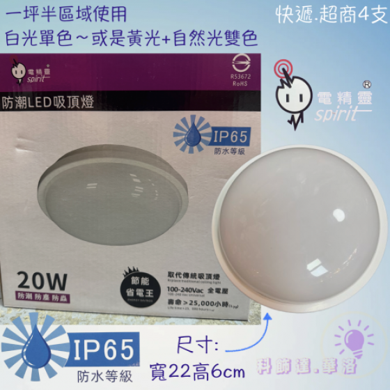 1坪多適用!BSMI認證20W吸頂燈!防水等級IP65防潮防蟲!陽台燈/玄關燈/廚房燈/儲藏室燈/吸頂燈.DRY-20W