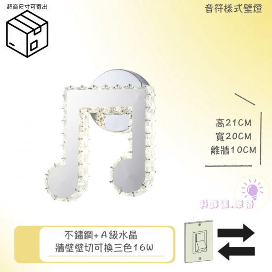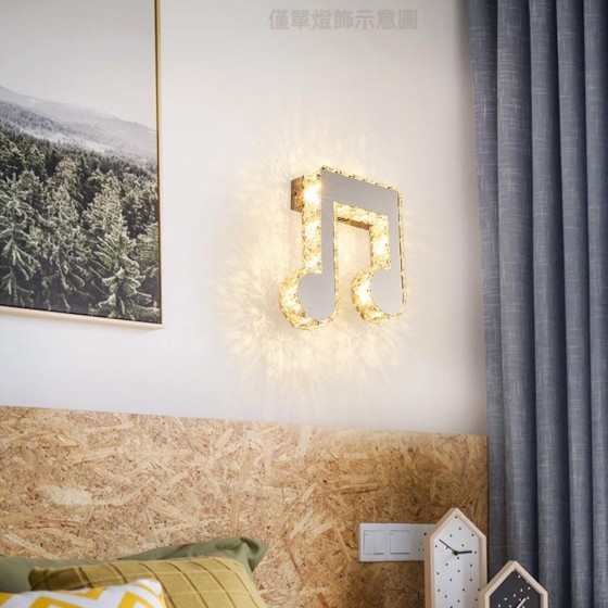 音符式壁燈.音樂樣式壁燈.三色光牆壁壁切切換顏色.不鏽鋼片+水晶.B8034-B