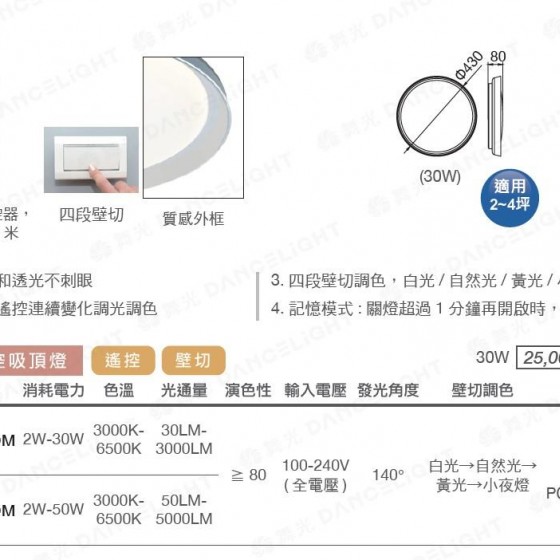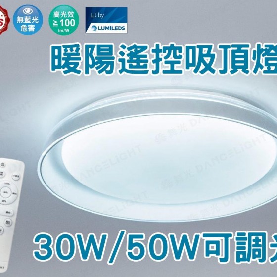 【舞光】免運費!暖陽遙控吸頂燈~30W、50W、可記憶色溫、附調光遙控器、四段壁切、無藍光危害!