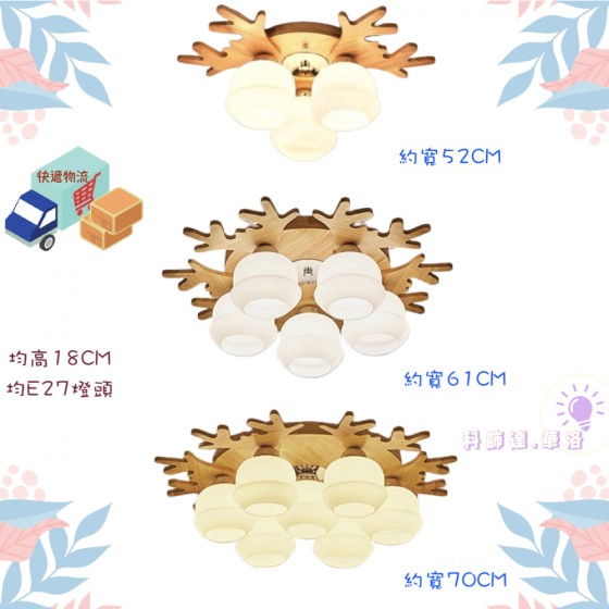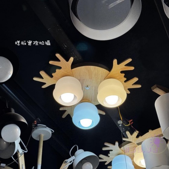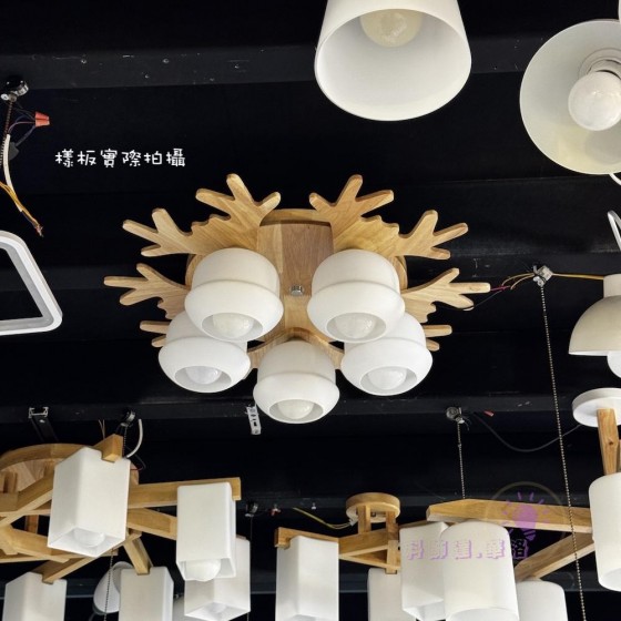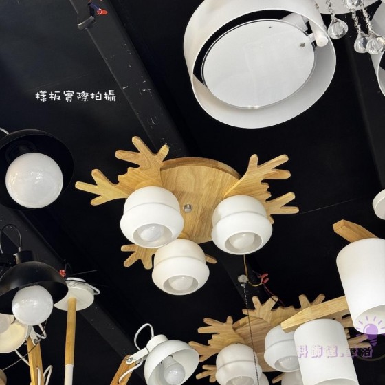 麋鹿半吸頂燈,鹿角半吸頂燈-3-5-7頭可選-木質半吸頂燈-C1317,桃園八德實體賣場展示中