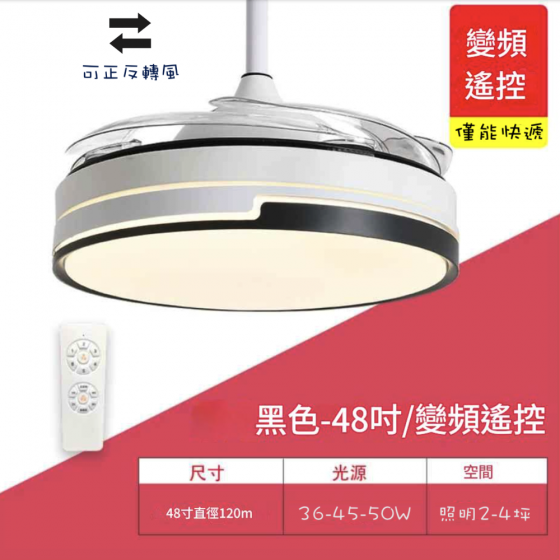 48吋~變頻風扇燈.黑白立體造型.隱形風扇燈-GS6002