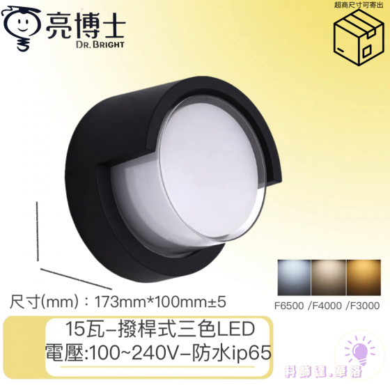 亮博士-LED 15W戶外半遮款 圓形吸頂/壁燈 (單色版)