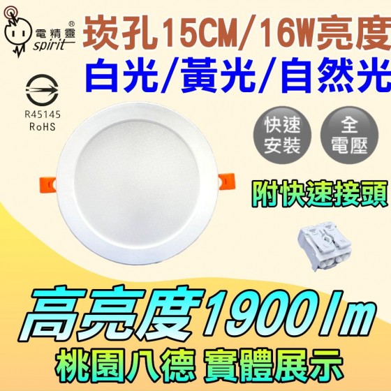 台灣現貨~崁孔15公分崁燈,LED崁燈,16W高亮度,高流明1900lm,白光/黃光/自然光,保固一年,超低價特賣