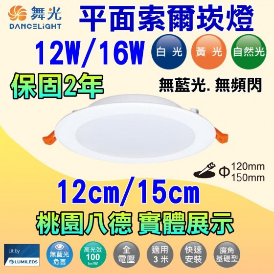 【舞光】保固兩年~12cm/15cm/12W15W平面索爾崁燈(黃光/自然光/白光)無頻閃.無藍光.桃園八德科華洛