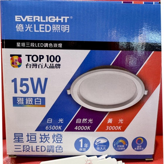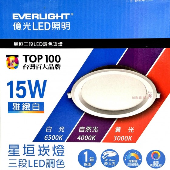 億光~15公分崁燈~15W星坦三段LED調色崁燈~1650LM高亮度~~台灣百大品牌~保固1年~快速接頭~科華洛燈飾