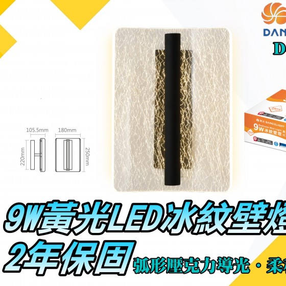 【舞光授權廠商】冰紋壁燈~9W黃光LED~弧形壓克力導光~唯美冰紋光線~直式預埋盒~CNS認證燈具~保固2年~