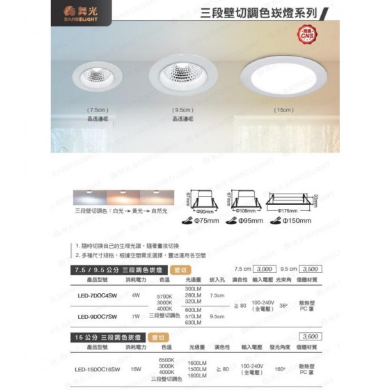 型號:舞光15公分三色光崁燈