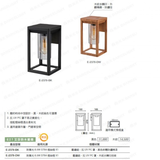 【舞光授權經銷】艾莎防水壁燈 送燈泡 砂黑款 IP44防水等級 戶外壁燈 日系壁燈