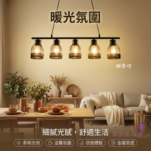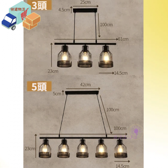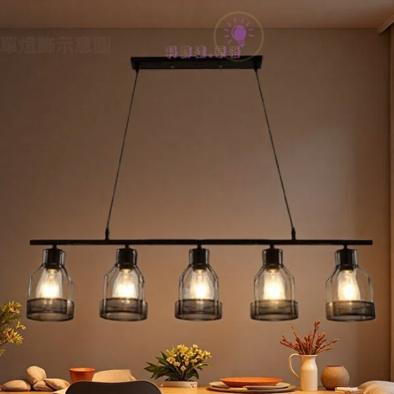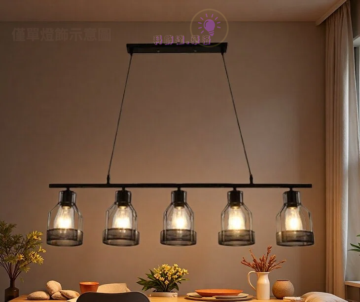 照明2-7坪看燈泡-美式吊燈,工業風吊燈3頭5頭可選,D9813-3-5,